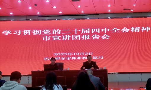 为深入学习领会党的二十届四中全会精神,切实把干部职工的思想与行动统一到党中央决策部署上来,12月3日,市林草局举办学习贯彻党的二十届四中全会精神宣讲报告会。