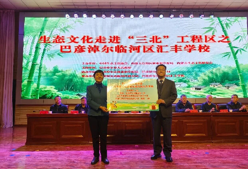 生态文化进校园活动中,中国生态文化协会邀请6名专家为学生讲解生态科普讲座,向汇丰学校捐赠了生态文化书籍与物资。