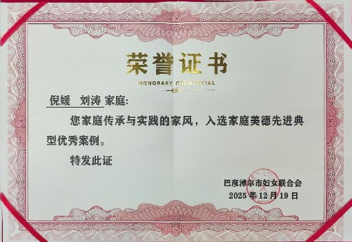 近日,在巴彦淖尔市妇联举办的2025年“家规家训亮家风”案例发布活动中,市林草局推送的倪媛、刘涛家庭入选家庭美德先进典型优秀案例,获评“最美家庭”。
