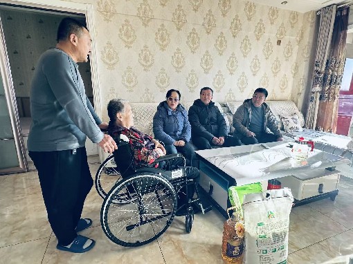 纳钦与困难群众座谈,详细了解其生活需求与身体状况,并送去米面油等慰问品,传递党的温暖和关怀。