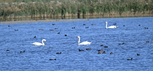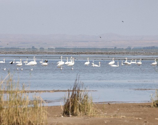 巡查过程中,乌拉特后旗红旗水库的红外相机监测到13只国家一级保护动物卷羽鹈鹕。此外,疣鼻天鹅、白琵鹭、绿头鸭、红嘴鸥等种群数量也明显增多。工作人员还发现了一只佩戴蒙古国蓝色环志的疣鼻天鹅。鸟类种群的增多、数量的增长,反映出区域生态建设保护的成效。