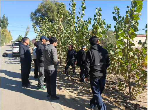 会前,参会人员实地查看了磴口、临河、白脑包等示范区的杨树新品种培育与防护林栽植情况。会上,各单位汇报了风沙土、灌淤土、盐渍土项目示范区的建设进展及今冬明春造林计划,并围绕苗木质量、整地标准与技术路径等关键环节展开研讨,共同制定了切实可行的推进措施。会议期间,参会人员专题调研了抗天牛、耐盐碱的杨树新品种,旨在推动高抗混交林带技术落地,实现对病虫害的自然控制。