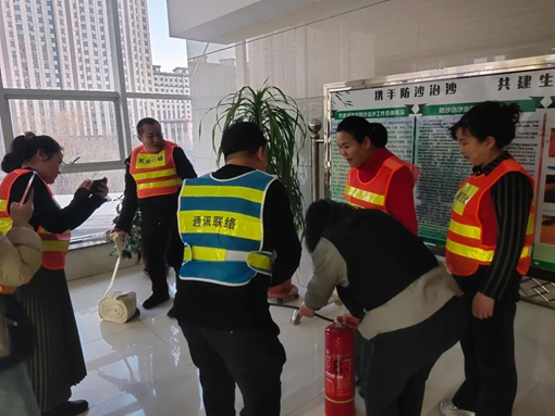 理论学习后,开展了大楼应急疏散逃生和灭火救援演练。在现场指挥人员的统一指挥下,按照灭火救援应急疏散演练方案,干部职工迅速分为8个小组,分别做好灭火行动、通信联络、疏散引导、安全警戒、医疗救护、后勤保障等工作。