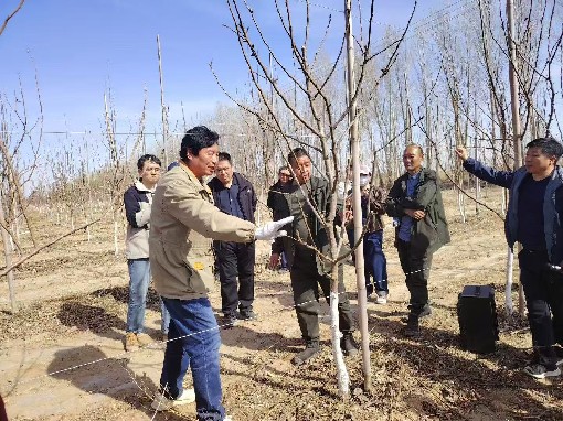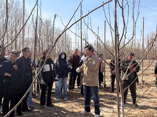 培训邀请河北农业大学教授、博士生导师、中国园艺学会梨分会理事长张玉星、内蒙古自治区林业科学研究院研究员杨荣、巴彦淖尔市沙漠综合治理中心正高级工程师王荣学围绕省力化树形构建、早春修剪关键技术、果园高效管理等内容,采用“现地教学+现场实操+专家示范+互动答疑”模式进行现场教学。